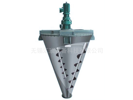 ● 螺旋部分:筒體內(nèi)兩只非對(duì)稱排列的螺旋作自、公轉(zhuǎn)行星運(yùn)動(dòng)時(shí),在較大范圍翻動(dòng)物料,使物料快速達(dá)到均勻混合。