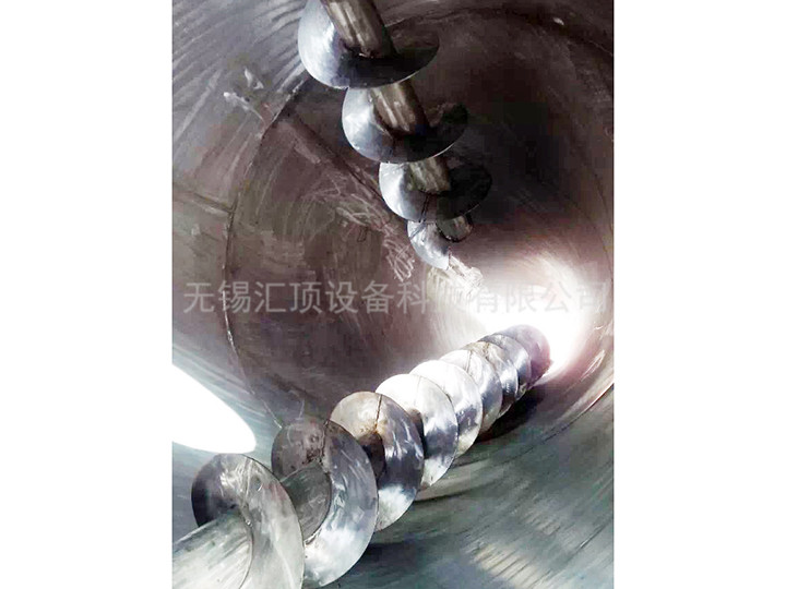 它由噴液霧化裝置、傳動(dòng)部分、筒蓋、螺旋、筒體、出料閥等組成。